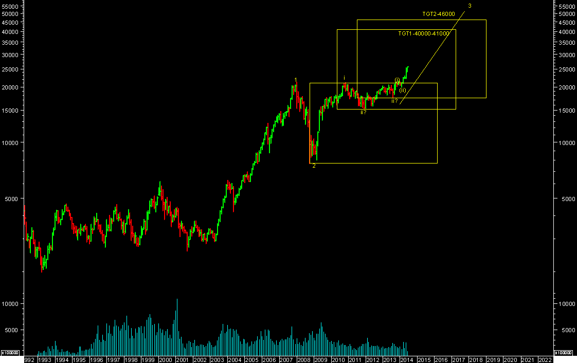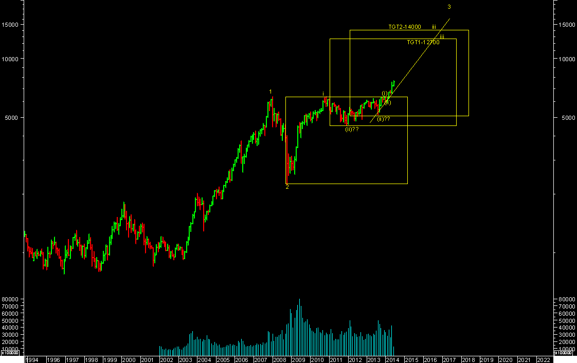 As Market sustained above breakout levels & trading at all time high levels, so based on yearly charts of both sensex & nifty, it looks like wave-3 of Indian Bull market.