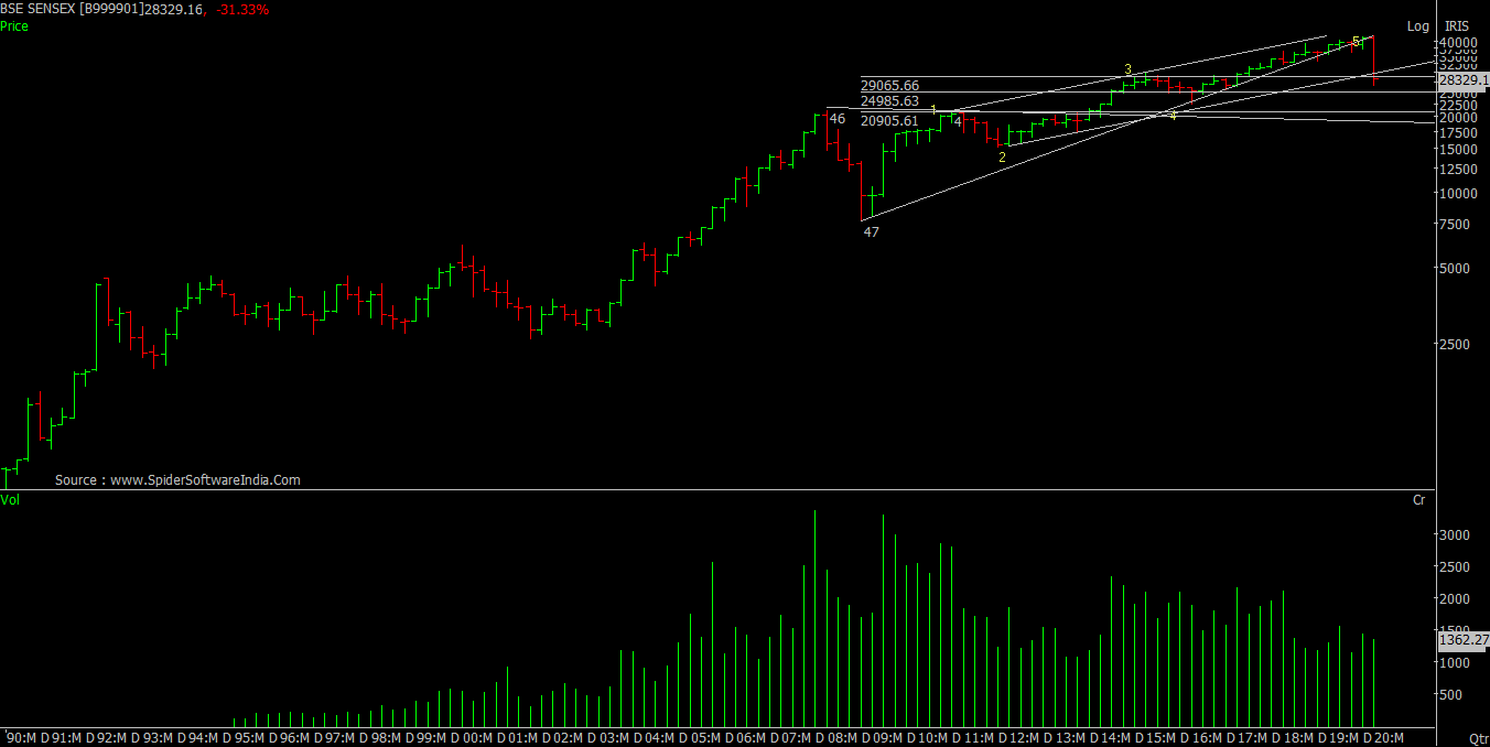 It looks like wave-V of Bull market ended on high of 12430.50 levels on sensex & 42273.87 levels on sensex & we have seen sharp sell off from these levels. Market has consolidated on higher range around 2 years (I.e 2018-2020) and eventually broken this range on down side beyond anticipation.