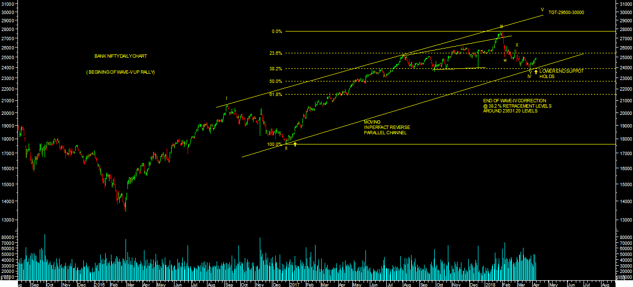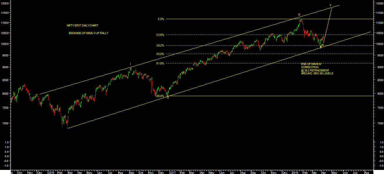 TIME WISE also market has completed wave-IV correction till march End as mentioned earlier. Many stocks particuallry of broader makret is also showing strength & strong signal of end of short term correction. Other indices such as midcap, small cap & Bank nifty is also showing strength & also giving strong sign of end of short term correction. Global Market particuallry , US Makret also showing sign of end of shrot term correction. Therefore, many of the evidences giving sign of short term bottom. Trader should strictly follow trend till it reverses.