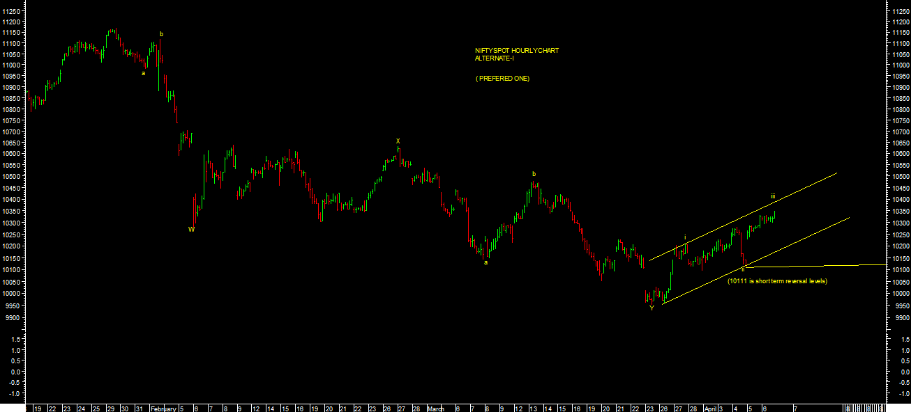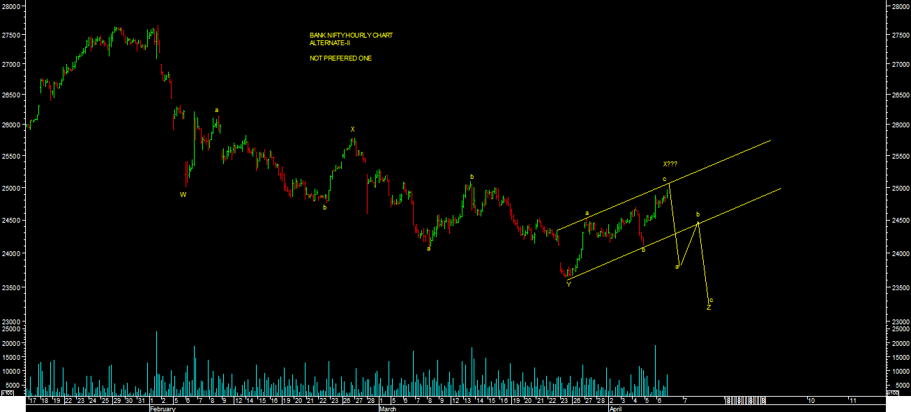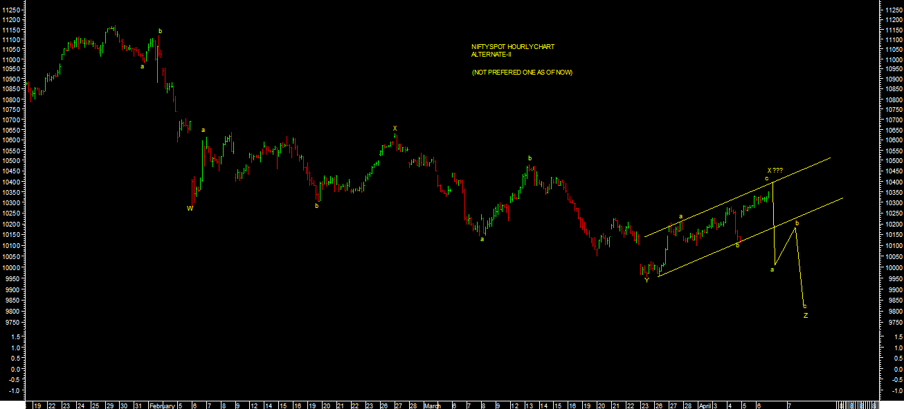 On the other hand, break of short term reversal levels will only open up possibility of Alternate-II wave count possbilty as per chart attached which is not my preffered one at current levels of market for short term.