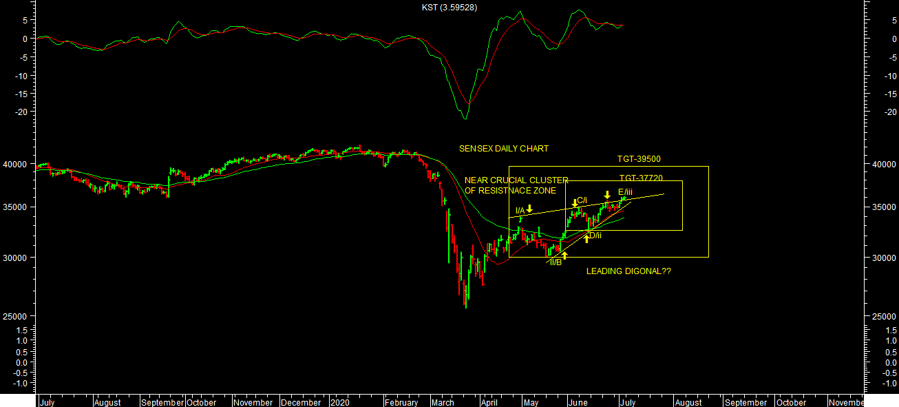 Momentum indicators Daily KST came in to BUY & Daily MACD both are in BUY supporting short term trend. One should be stock specific & follow trend with trail stop loss levels till it reverses in short term. 10200 levels on nifty & 34500 levels on sensex is short term support zone, break of it will lead to sharp fall in market in short to medium term.