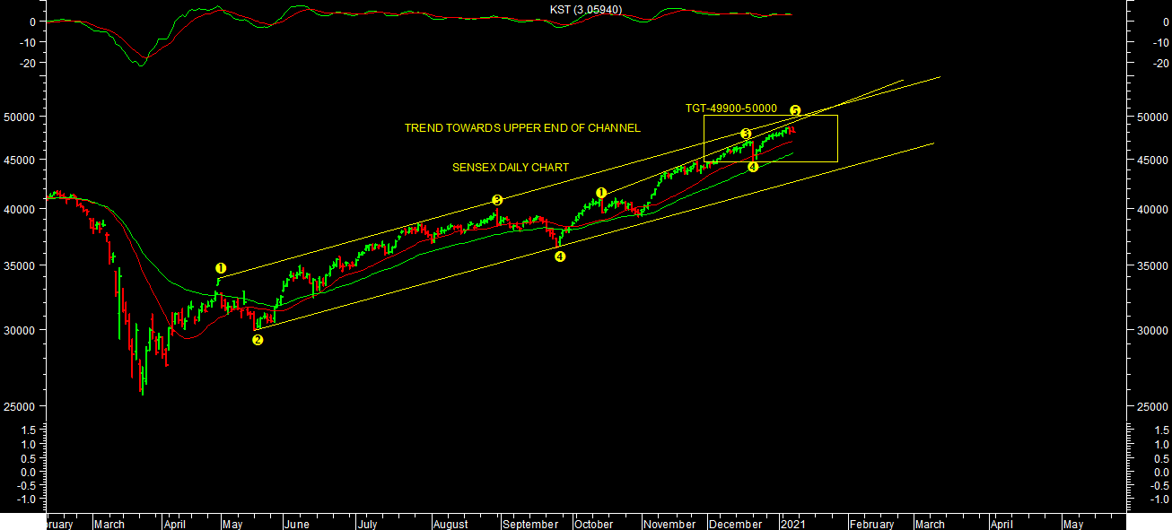 Market closed in Positive territory at 48,782.52 (+ 689.19)TREND TOWARDS UPPER END OF CHANNEL: