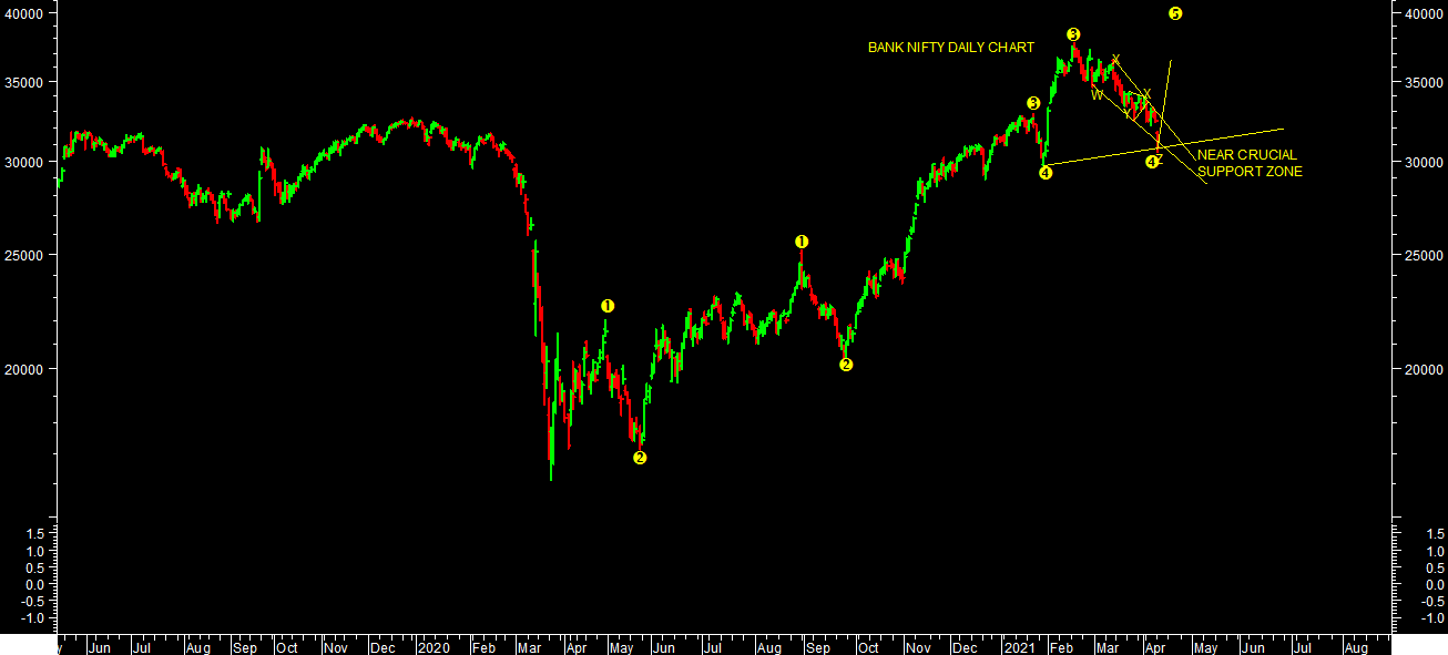 BANK NIFTY remained under performer & remained in correction mode in this consolidation phase of market. It has corrected around 20% in this 8 weeks. It sharply reversed near from medium term support levels. 30500 is crucial support zone for bank nifty till it holds, one can expect higher levels target1-34000 & target2-36500 levels in short term. It looks like final last leg up for bank nifty of rally started from March 2020 from overall wave counts perspectives as per chart attached. 29600 levels is strong support on bank nifty for medium term perspectives on bank nifty. One should closely watch out Bank nifty in near term for further confirmation of rally & break out of range on upside.
