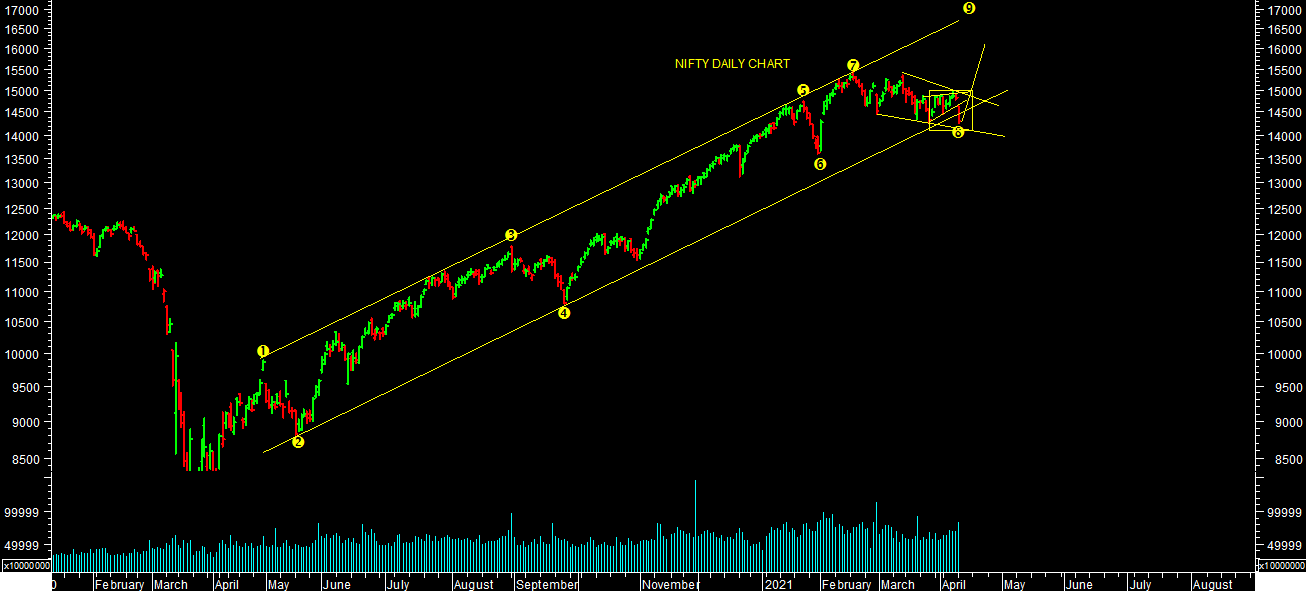 Market once again tested lower end of range of this 8 week consolidation. It made a low of 14248 levels on nifty & 47693 levels sensex. It further sharply bounced back from lower levels at the end of trading session. It looks like ending diagonal kind of end of short term correction pattern as per chart attached. One can expect market to trend higher & possibility of these range to break on upside till this lower end of support/Reversal levels holds. BANK NIFTY will be key to watch out in short term for further confirmation of rally in short term. One can expect market to rally towards higher levels as mentioned below in short to medium term till these support holds in near term. One should keep stock specific approach in BUYING & keep profit booking at regular intervals & follow trend till it reverses.
