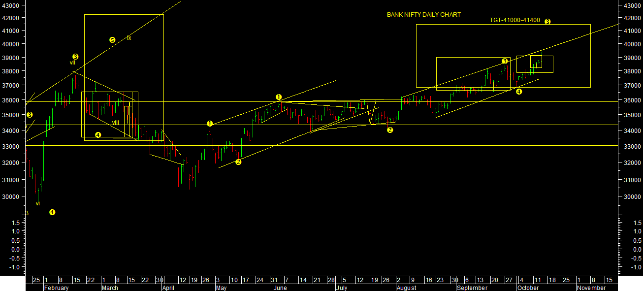 BANK NIFTY is also slow & steady extending & achieving higher levels targets as expected earlier in short to medium term. It made a high of 39375.05 levels so far in this rally. 37700 is strong support for Bank nifty in near term, till it holds one can expect higher levels target-41000-41500 levels in short term. 36500 levels is strong support on bank nifty for medium term perspectives on bank nifty. One can expect higher levels target of 44000 levels in medium term.