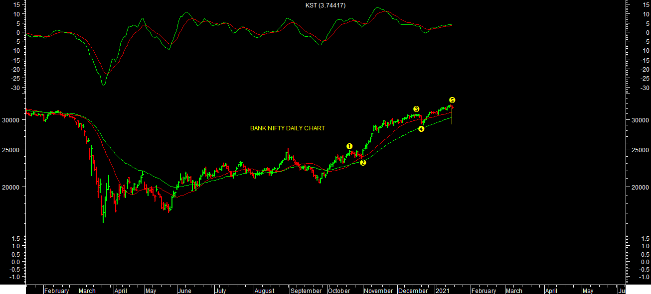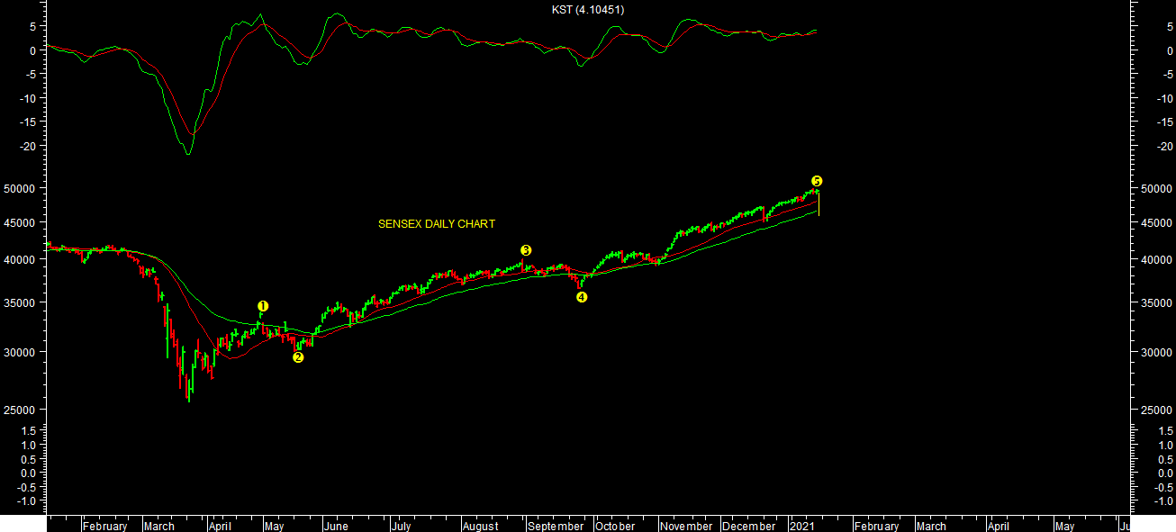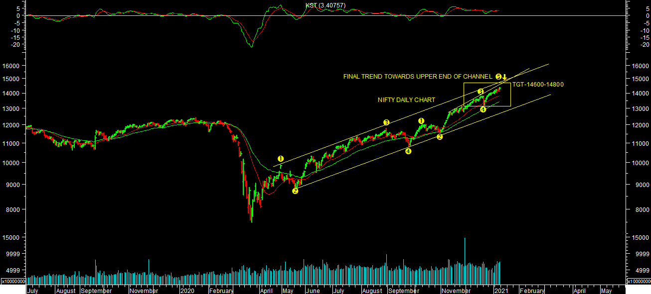 It looks like end of 5 wave advance rally near recent high as per chart attached. It looks like possibility of short to medium term correction in market of entire rally from bottom of March 2020. One should be cautious & book profit at current levels of market. It will remain volatile ahead of budget events in short term.
