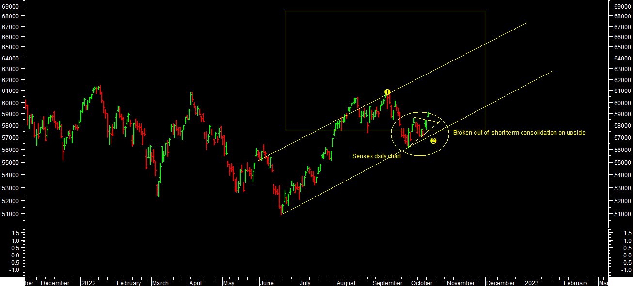 It looks like end of wave-II correction with today’s short term reversal. Market has broken out short term triangular pattern on upside as per chart attached. One can expect market to trend towards higher levels targets as mentioned below in short to medium term till it reverses.