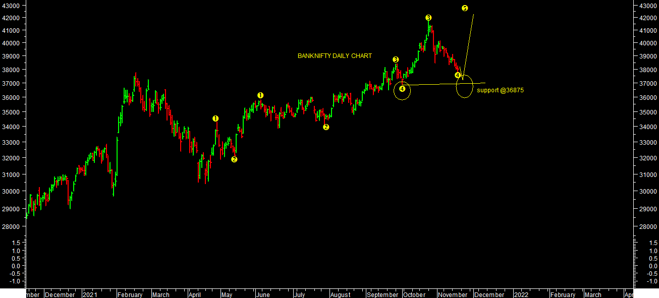 BANK NIFTY is underperforming in short term. It’s in wave-IV correction it made a low of 37784.45 levels. There is also Wave-V up pending in bank nifty as per chart attached till it reverses. One can expect further lower levels till 37500-37000 levels in short term till it trades below 38460 levels. Alternatively, it can consolidate in range of 37500-39500 levels in short term for some more time. 36875 is strong support for medium term perspectives, till it holds one can expect further higher levels targets till 42000 levels in medium term.