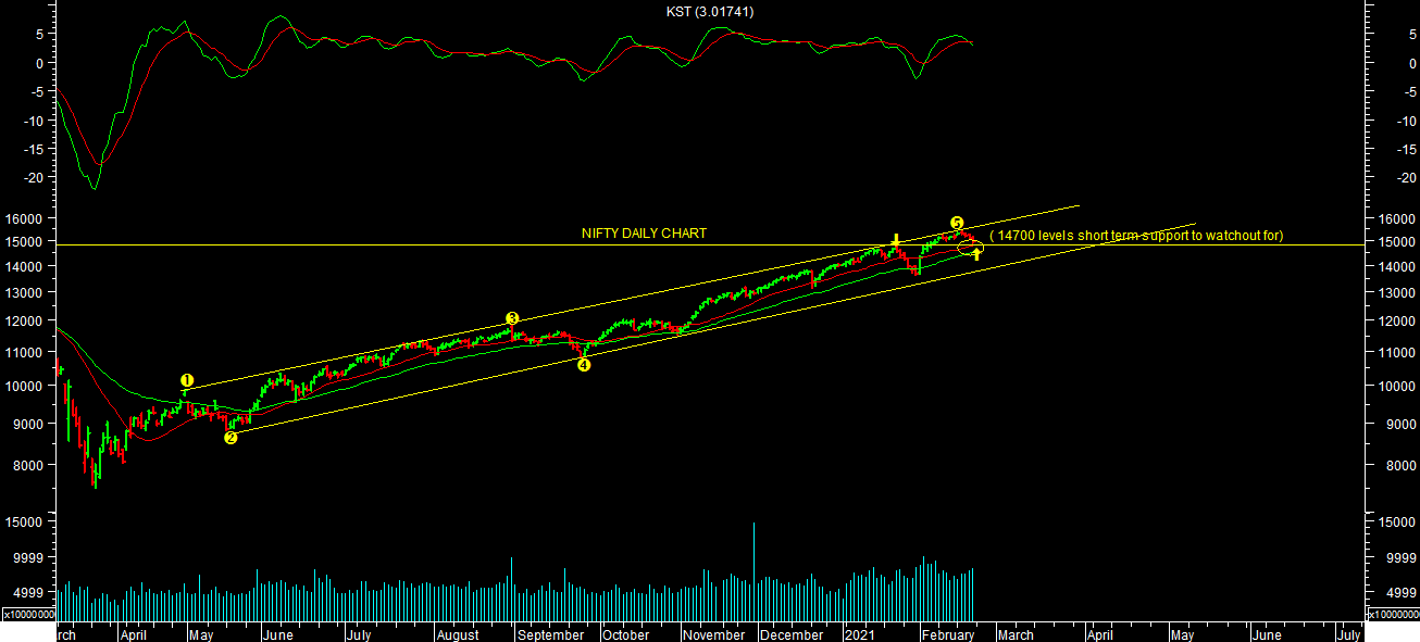 Momentum indicators Daily KST went in to SELL but Daily MACD is still in BUY indicating volatile trend in short term. Close & sustain below short term reversal levels will lead to sharp fall towards 14500/14300 levels on nifty & 49200-48750 levels on sensex in short term. One should be stock specific ¬ to be carried away with too much leverage in this euphoric phase of market & follow trend with trail stop loss levels till it reverses.