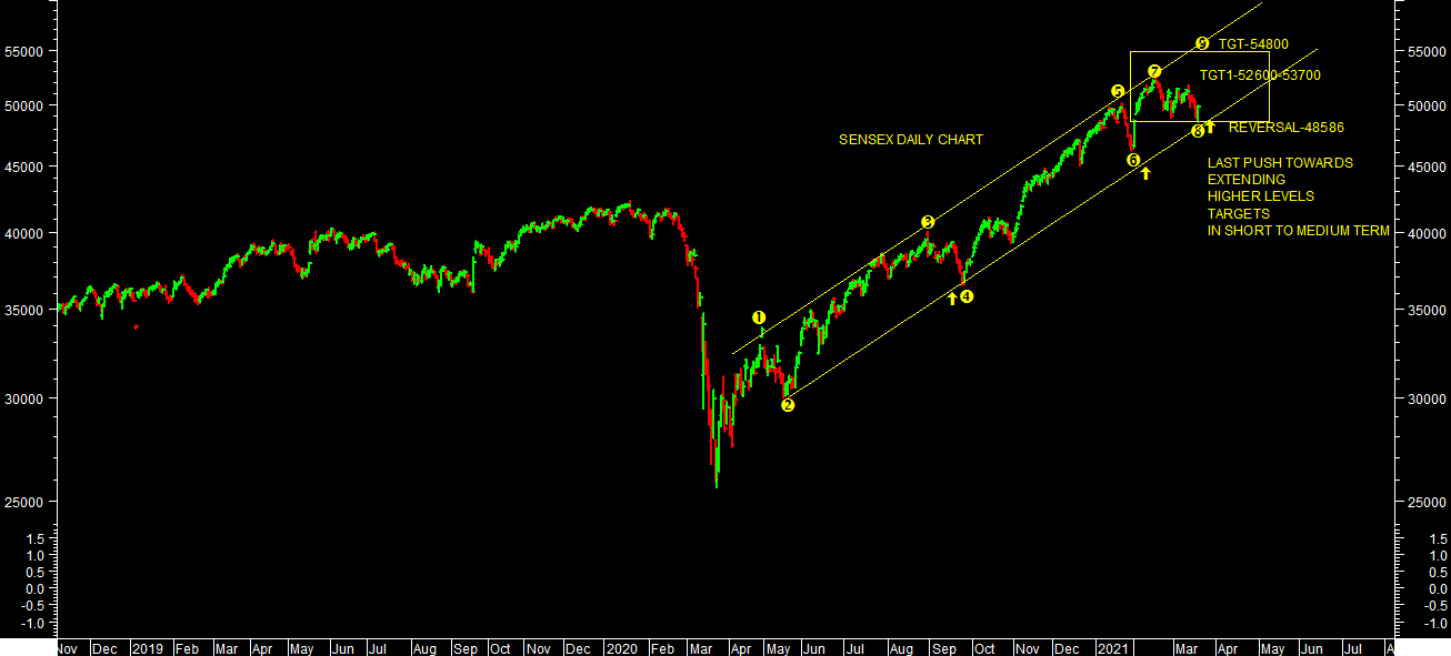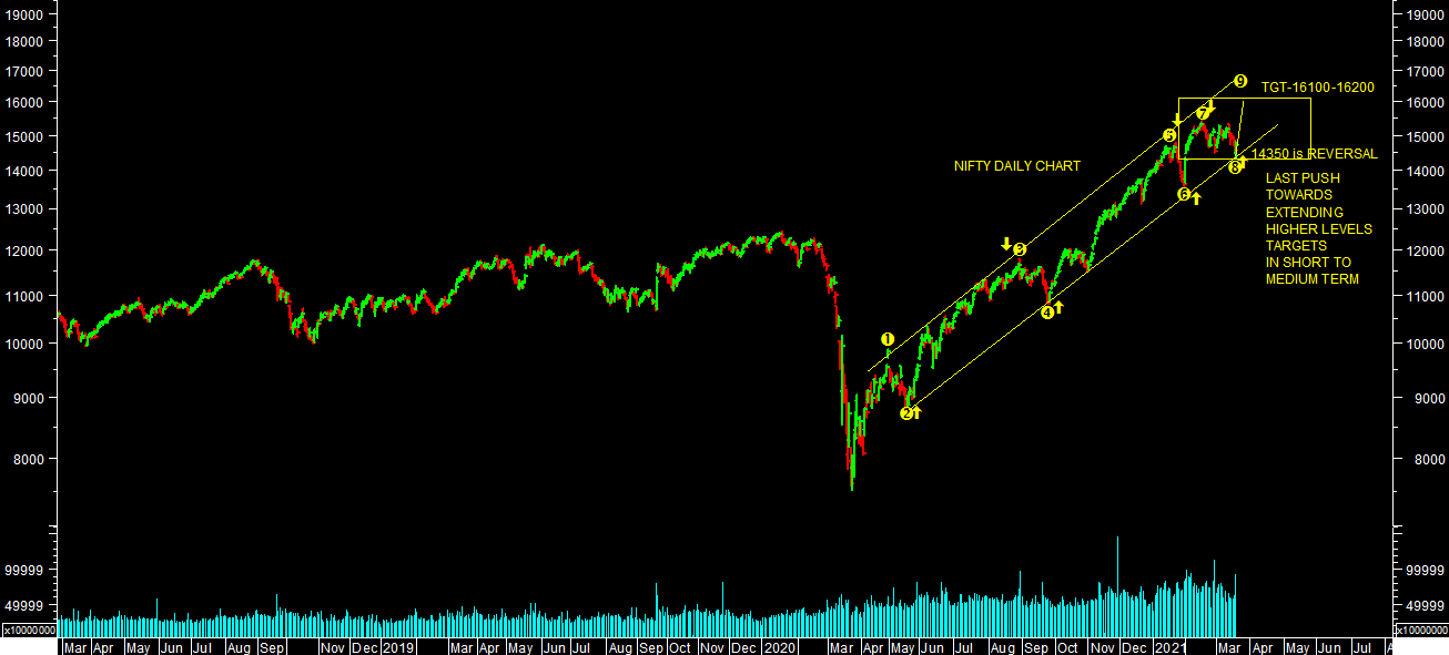 It looks like last push of extended rally started from March 2020 for higher levels targets from overall wave counts perspectives as per chart attached. One can expect market to trend towards higher levels targets in short to medium term till it reverses.