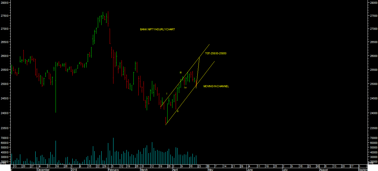 BANK NIFTY also closed weekly in negative territory. It has relatveily underperformed during week. Its consoldating in thin range of 25500-25000 levels during week. Its also trading in channel as per chart attached. It has strong support around 24,115.80 levels. One can expect higher levels targets around 25800 levels in short term& further above 29600-30000 levels in medium term.