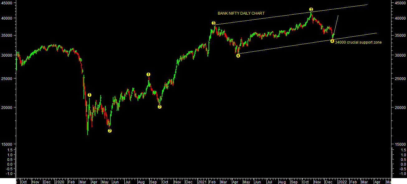 BANK NIFTY is underperforming in short term. It made a low of 34018 levels in this correction. Although overall wave counts is not conclusive for Bank nifty at current levels but one can expect rally from lower levels till 34000-33900 support levels holds for bank nifty from short to medium term perspectives. One can expect rally pull back rally for higher levels target1-37500 & target2-39000 levels till trend reverses. 33900 is short to medium term reversal for the same.