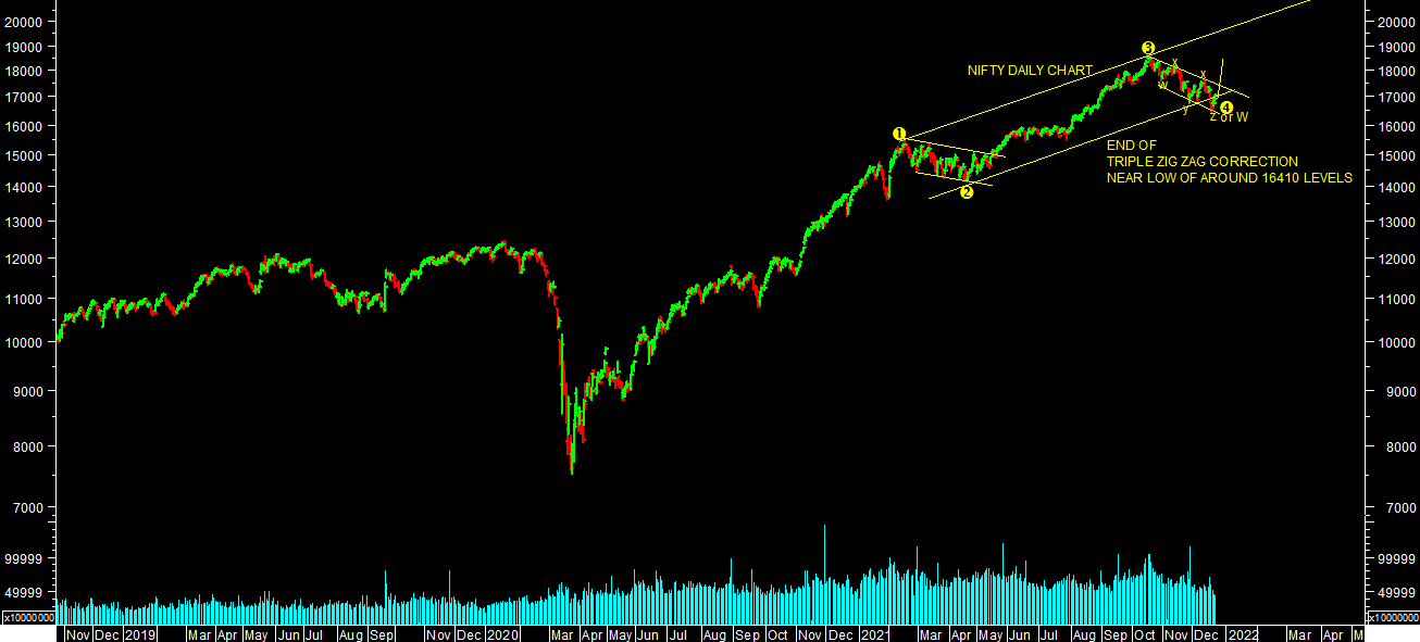 It looks like end of Triple Zig Zag correction as per chart attached. It can be either Wave-W or Wave-IV Short term correction from overall wave count perspectives. One can expect rally in market till this holds from short to medium term perspectives till overall trend reverses.
