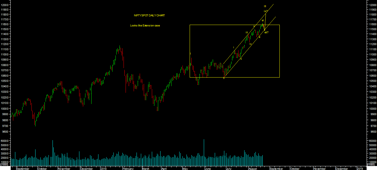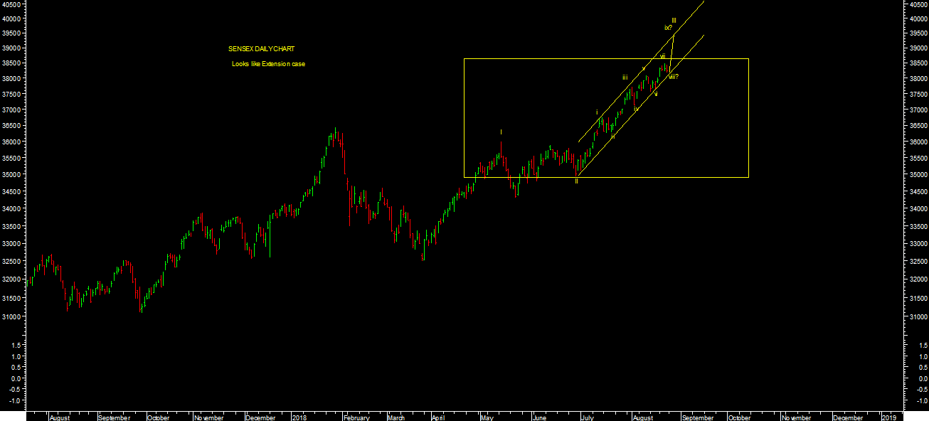 Market closed 5th concecutive week in positive territory. It has achieved my short term targets levels near recnet high as expected. It made a high of 11,620.70 levels on nifty & 38,487.63 levels on sensex during week. It looks like extension case furhter as per short term wave count chart attached.Any kind of short term consolidation or correction is stock specific buying opportunity till short term reverses.