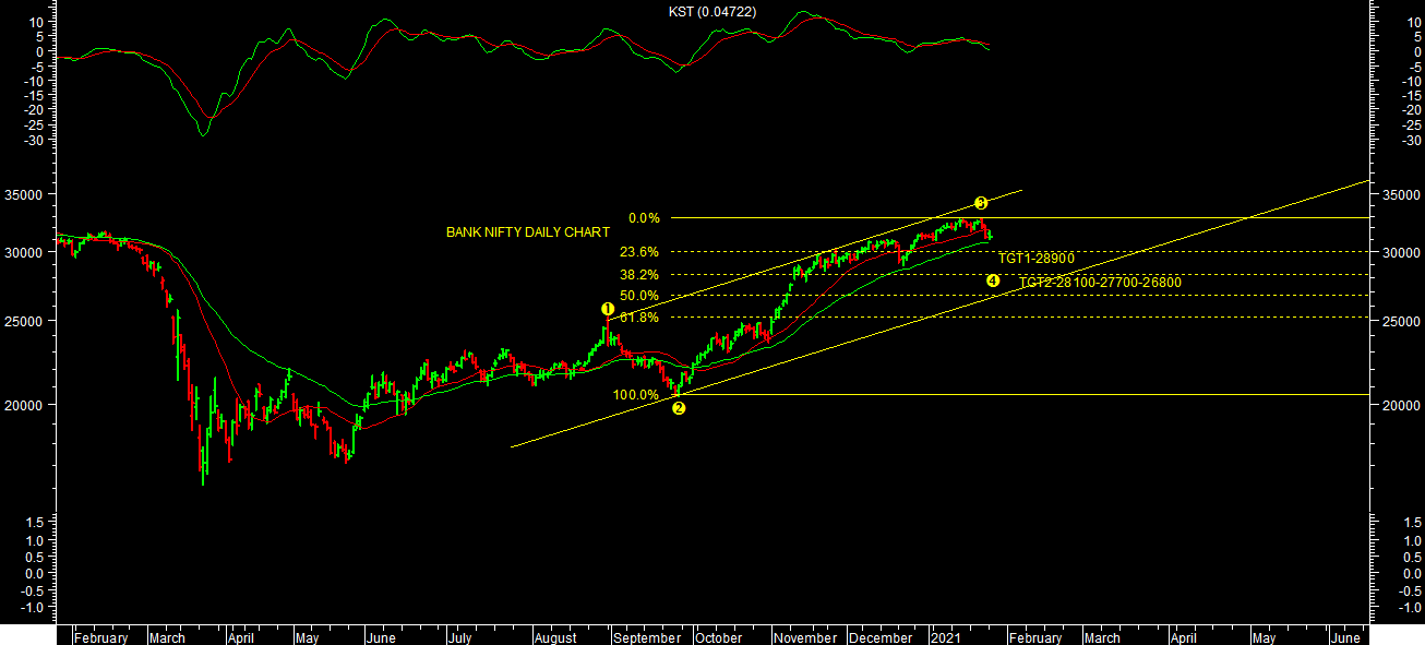 BANK NIFTY also broken crucial supports & witnessed sharp fall. 31700 is short term reversal levels, one can expect lower levels target1-28900 & tgt2-28100-27700-26900 in short term. It also looks like wave-IV correction on bank nifty as per chart attached. 25200 levels is strong support for overall bullish view on bank nifty for further higher levels targets till 33500-34000 levels in medium term.