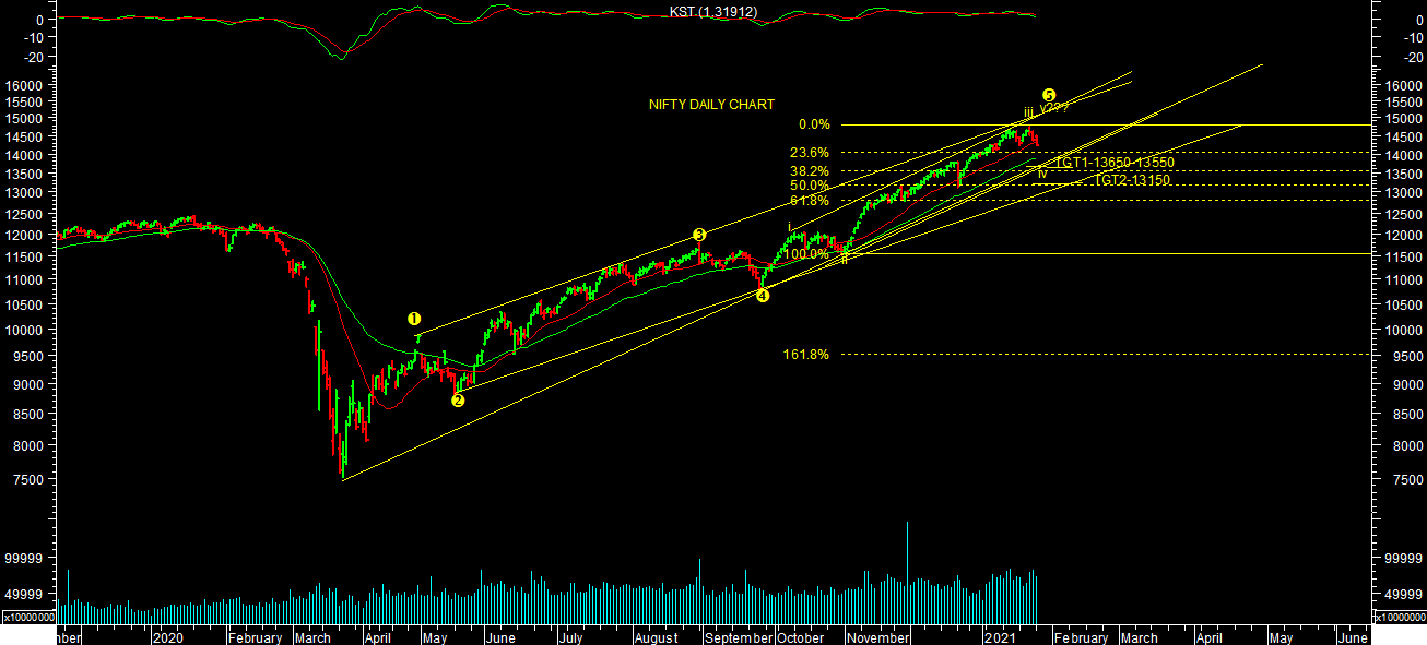 Market sharply broken crucial supports & witnessed sharp profit booking as warned earlier. It looks like correction to extend further towards lower levels targets as mentioned below. Generally, Markets are doing 3 weeks correction so far in this entire rally since March 2020, therefore expects market to remain in corrective mode till end of next week. One should expect market to trend towards lower levels targets in this correction till it reverses.