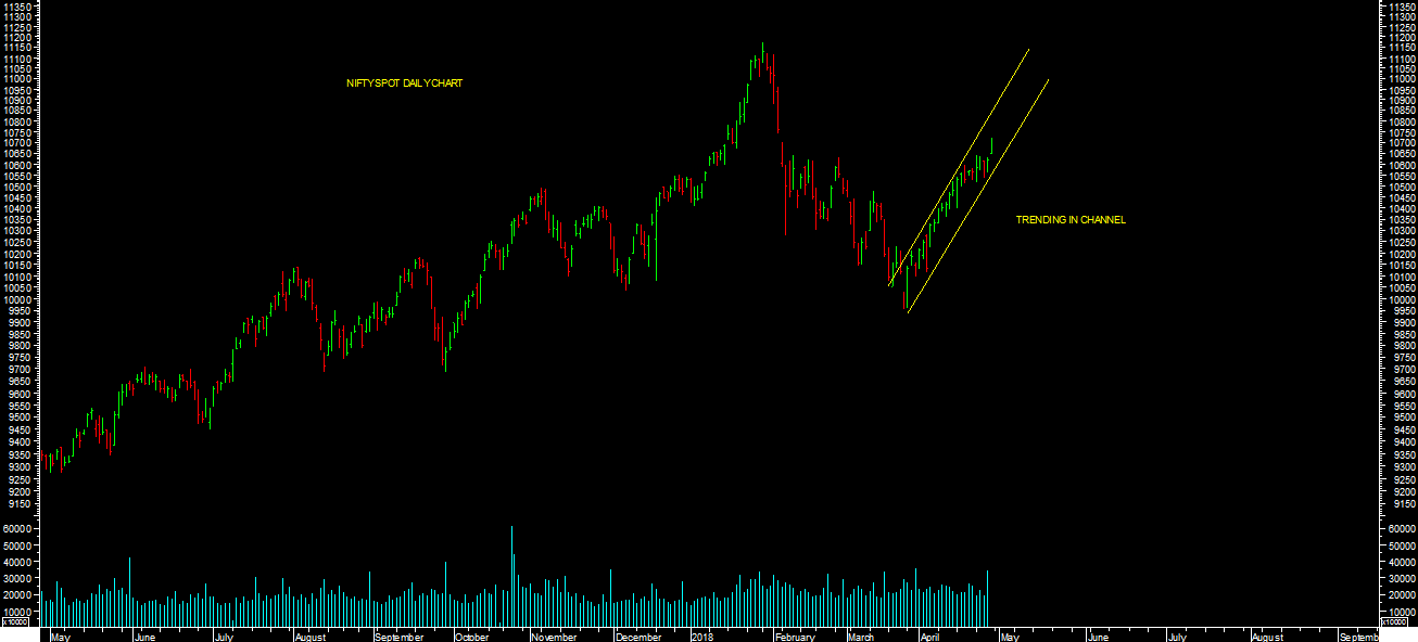 Market closed 5th concectuive week in positive territory. Its slow but steady extending on upside towards higher levels targets in short term as exepcted last week. It made a high of 10,719.80 levels so far in this week. It closed near high at the end of weekly trading session. Its traign in channel as per daily chart.All the other indices such as midcap, small cap etc also extended gain & closed weekly in positive territory. One can expect market to extend further towards higher levels targets as expected below in short term. Any kind of decline or short term consolidation is stock specific buying opportunity till short term reverses.