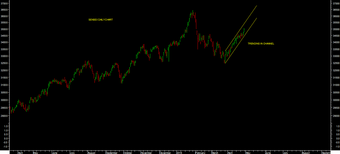 Market closed in positive territory at 34,969.70 (+ 256.10)SLOW BUT STEADY EXTENDING FURTHER ON UPSIDE: TRAIL TILL IT REVERSES