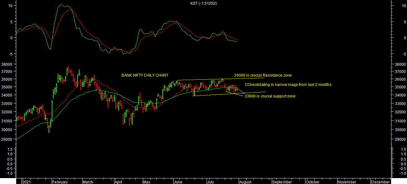 BANK NIFTY is still underperforming at current levels of market. It’s also consolidating in narrow range of 33900-36000 levels in near term as per chart attached. Break of this range will lead to trend with momentum in short term. Expecting this range to break on upside till lower end of support holds. 33900 levels is strong support for short term, till it holds one can expect higher levels targets till tgt1-36600 & tgt2-37400/37800 levels in short term. 31900 levels is strong support on bank nifty for medium term perspectives on bank nifty. One can expect higher levels target1-42000 & target2-46300 levels in medium term.