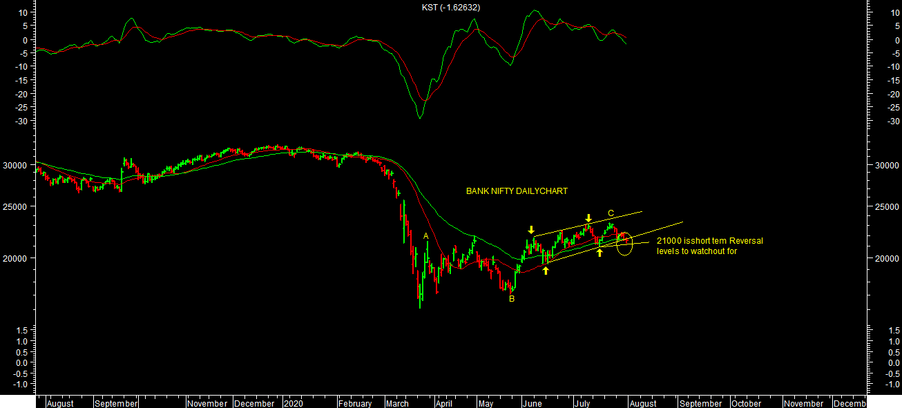 BANK NIFTY is underperforming at current levels of market. It has closed weekly in negative territory. It’s closed near crucial support/reversal levels as per chart attached. 21000 are strong support/Reversal levels for short term to finally conclude end of pull back rally on bank nifty. Till it holds one can expect it to once again retest it towards upper end of range towards 23500-24000 levels as per chart attached in short term. Close below 21000 levels will lead to sharp fall in bank nifty towards 19500 levels in short term. Although from medium term perspectives view remains down till it trades below 27000 levels , 27000 & expect lower levels targets till 17000/16000 levels in medium term.