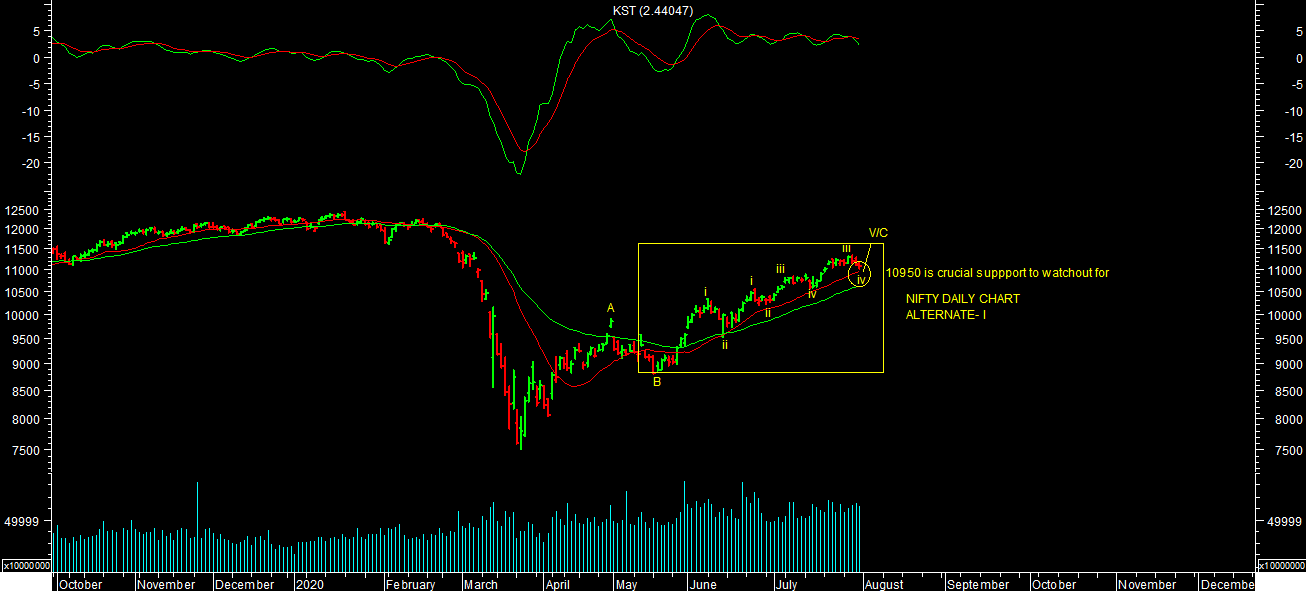 I have shared two alternate from short term wave count perspectives. In first case, ABC Pullback rally looks over with this weekly positive close & alternatively in second case, it has still possibility of wave-V of C pending on upside till short term reverses. My preferred one is second till short term reverses as per chart attached so far.