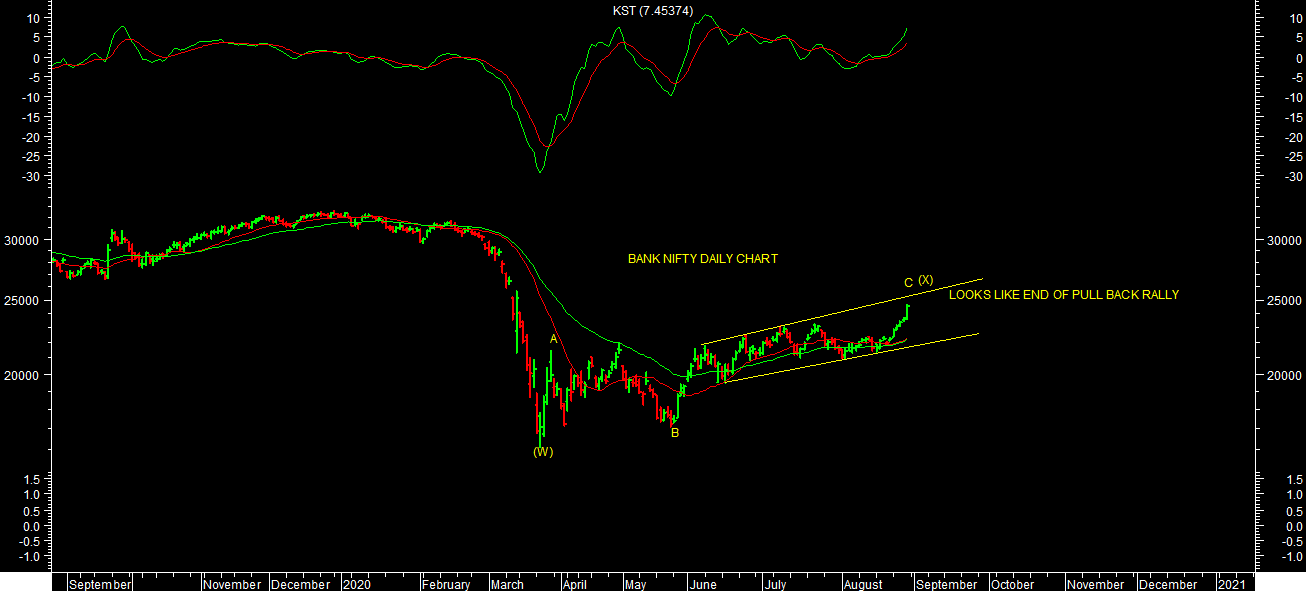 We have seen sharp rally in BANK NIFTY as expected. It has achieved my short term targets levels near recent high as expected earlier. It made a high of 25270 levels today. We have seen sharp selloff & Profit booking from these levels. One can expect BANK NIFTY to trend towards lower levels target1-22100 & target2-21000 & taregt3-19500 levels in short term. 25270 levels are crucial resistance/reversal levels for short term. 27000 levels is medium term reversal levels for Bank nifty, till it holds one can expect lower levels targets till 17000/16000 levels in medium term.
