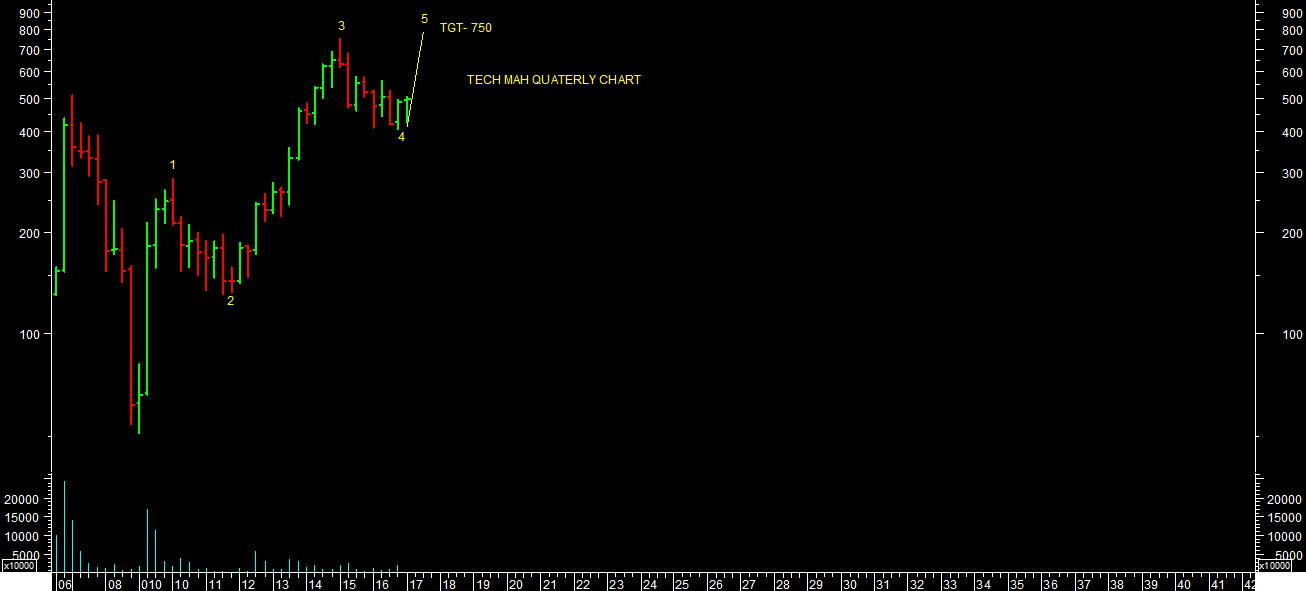 TECH MAH looks completed its medium term correction. IT looks like completion of wave-IV correction as per quarterly chart attached. It looks like beginning of wave-V up rally in medium to long term perspectives as per chart attached.